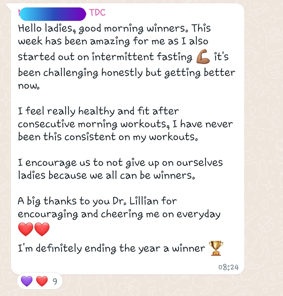 This promotes whole health and it is with this mantra that Dr. Lillian lives life and teaches others to do the same, so as to acquire completeness in health and all else.